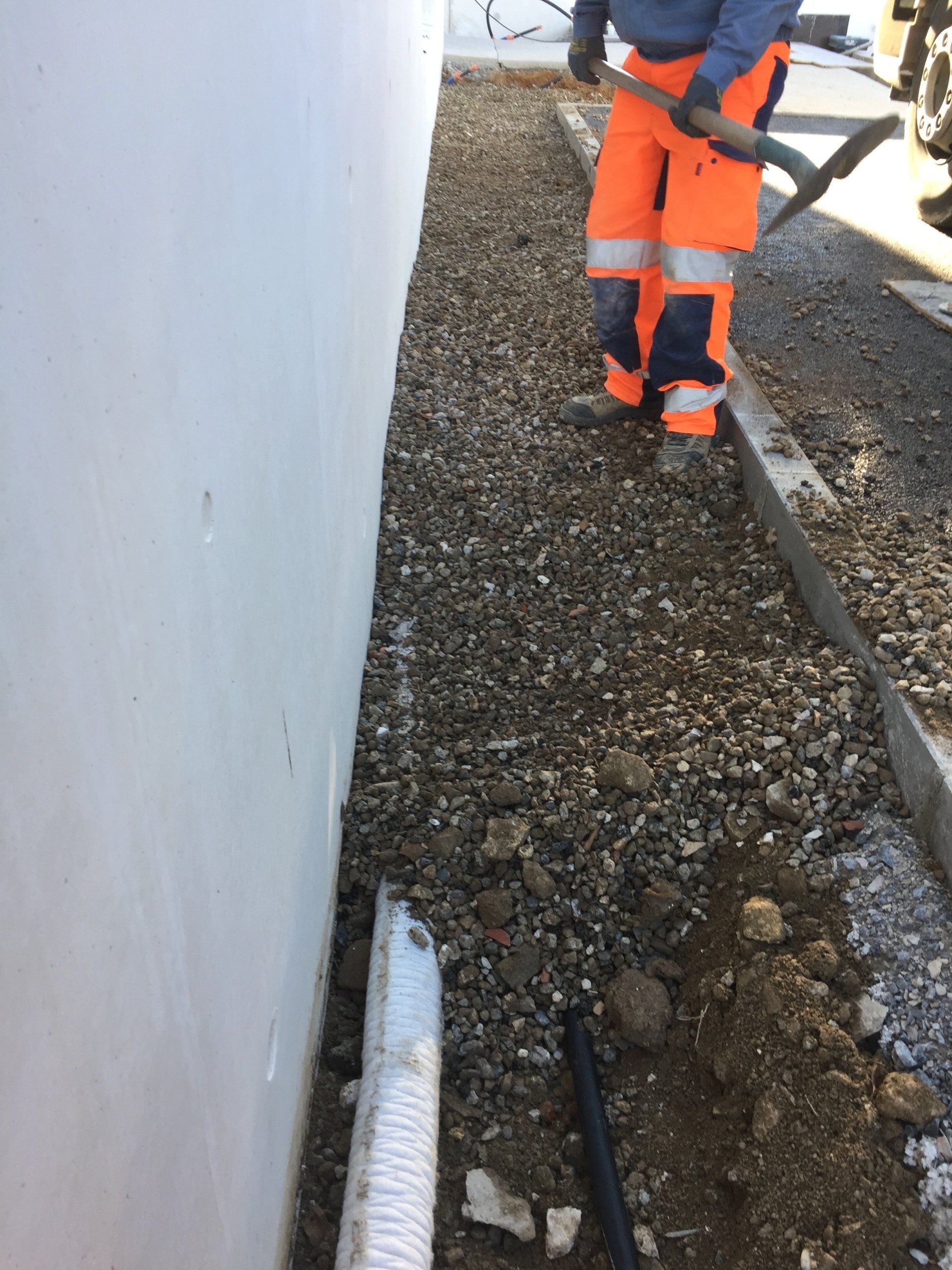 Installation de canalisations et VRD : viabilisation du terrain pour la construction, les raccordements et les branchements aux réseaux d'eau, d'électricité, de téléphone, de gaz de ville, évacuation des eaux usées vers les réseaux d'assainissement collectif, tuyau drainant pour les eaux de pluie.